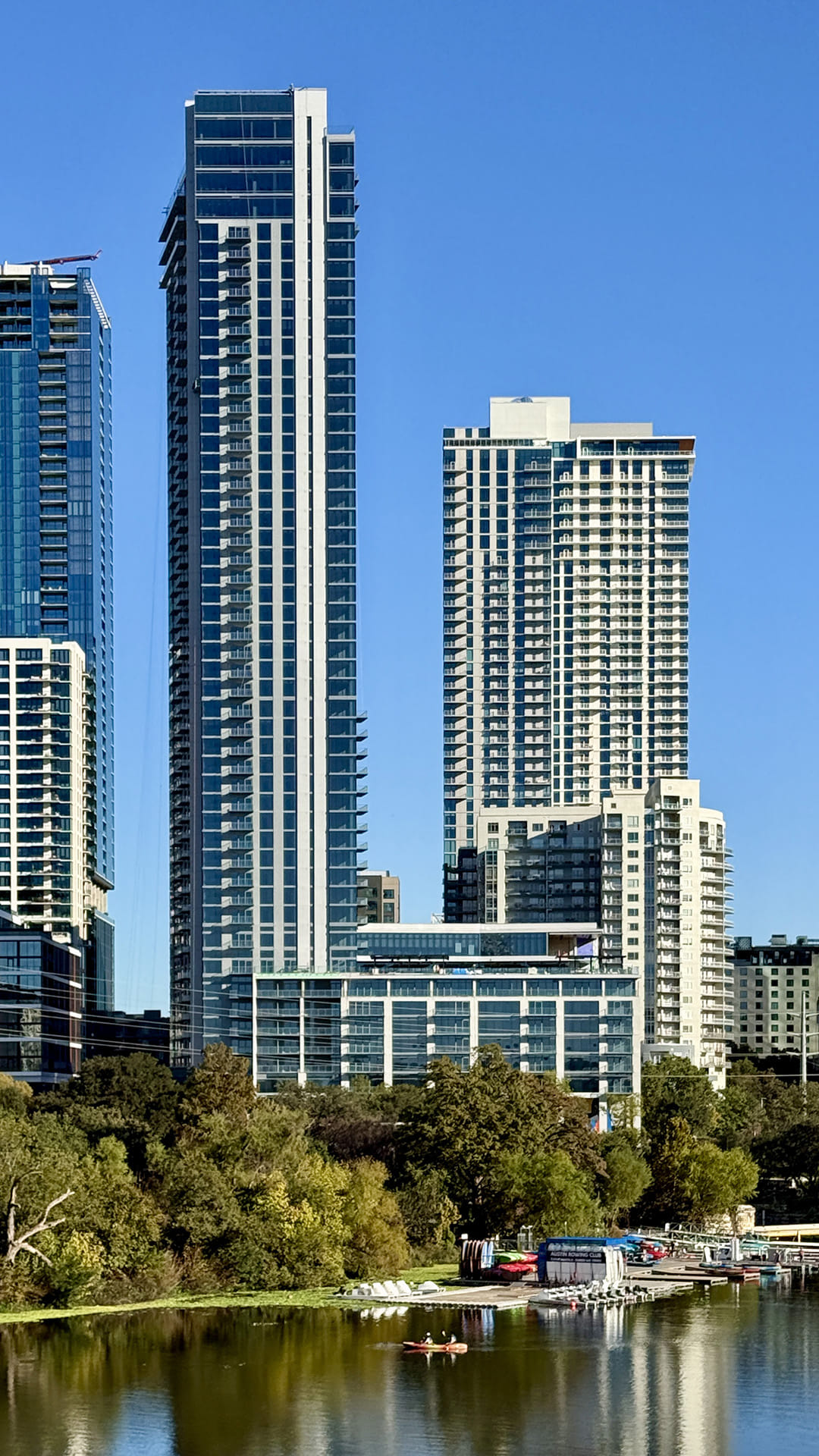 At 562’ in height, the Travis is Austin’s tallest single-purpose apartment tower. Located at the southern end of Red River St, the tower sits at the cusp between the fabric of downtown Austin and the park trails lining the Colorado River. This gives the resort style amenity deck on level 8, and the 423 tower residents above, uninterrupted views across the S Congress Ave bridge and down the center of the Colorado river as it flows past downtown. Where the tower meets the banks of the river, it addresses the active trails along its edge with an art gallery and studio, bicycle storage and maintenance areas, and a small 600 sf coffee shop. From there a monumental stair rises from the trail system to tie it into the city’s sidewalk network above.